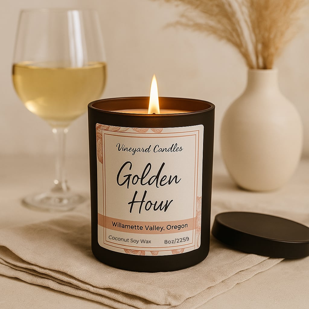 Effervescent, sun-drenched, and made to linger. Inspired by that magical moment just before sunset, Golden Hour opens with a vibrant burst of raspberry and red currant, layered over creamy coconut and finished with the soft fizz of champagne. A touch of juicy peach adds warmth, evoking the glow of a summer evening spent in good company and golden light. Bright, breezy, and effortlessly elegant, this scent captures the sparkling charm of wine country at its most unforgettable.